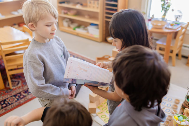 The day begins with a Montessori work period and ends with a community meeting. Students will have a minimum of 30 minutes on the playground (or community room in inclement weather) followed by lunch. The afternoon starts with a quiet time and chapter book followed by more advanced works for the older children. The afternoon will also offer specials including library time, cooking, and special outings.