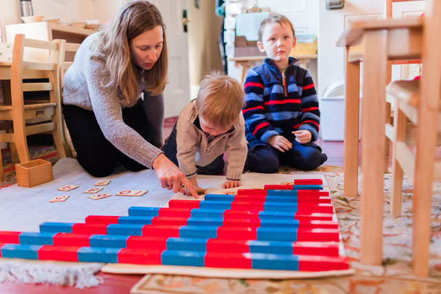 MATH Children will, after gaining a concrete knowledge of 0-10 have the opportunity to experience mathematical operations, linear counting, and the decimal system. All of this is done tangibly and visually with the Montessori Materials.